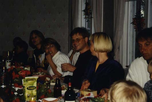 Retkis��ti�l�isi� nauttimassa rapuja kes�ll� 1999